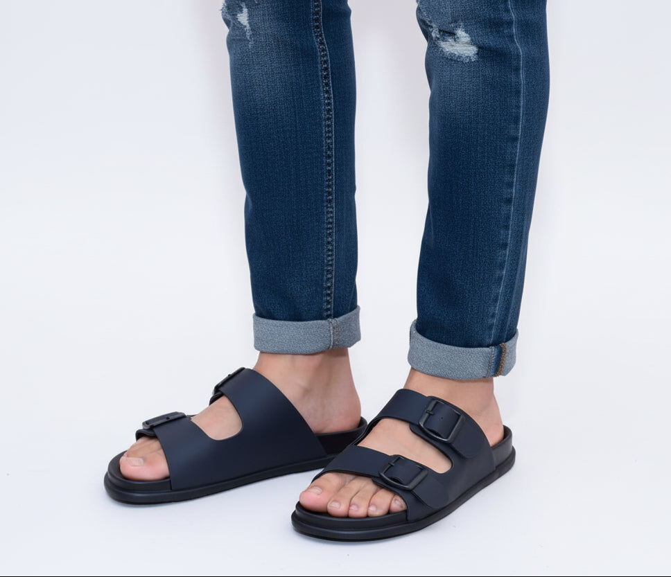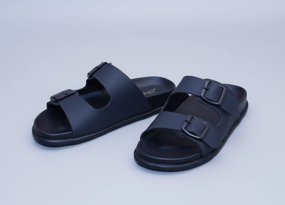 ZAWA Vereno Black Sandals – Sleek black design with adjustable buckle straps for a perfect fit. Soft cushioned footbed, lightweight build, and all-day comfort. Ideal for daily wear, travel, and casual outings. Minimal, stylish, and durable — grab your pair now! 🖤👣